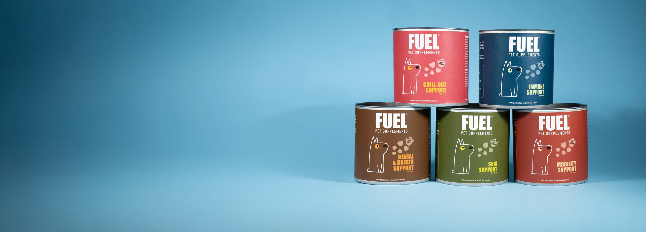 Fuel PetSupplements biedt een breed scala aan supplementen, speciaal ontworpen om aan de specifieke behoeften van uw hond te voldoen. Wat ons uniek maakt in Europa, is het gebruik van postbiotica in al onze formules.